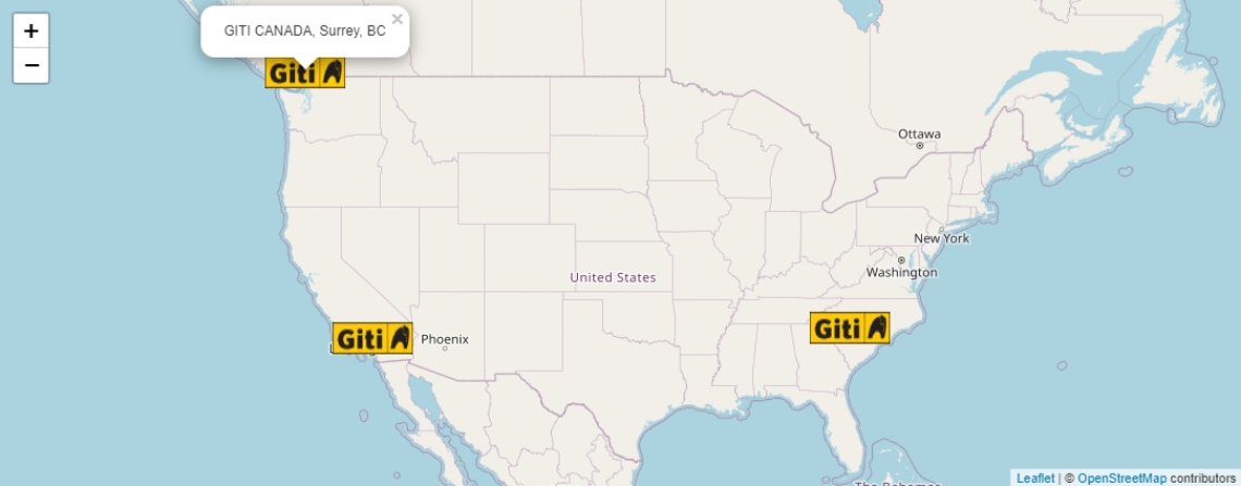 Le siège nord-américain de Giti, situé à Rancho Cucamonga, en Californie, juste à côté de Los Angeles, a été créé en 2005. Les opérations canadiennes, basées à Surrey, en Colombie-Britannique, ont été établies en 2007.