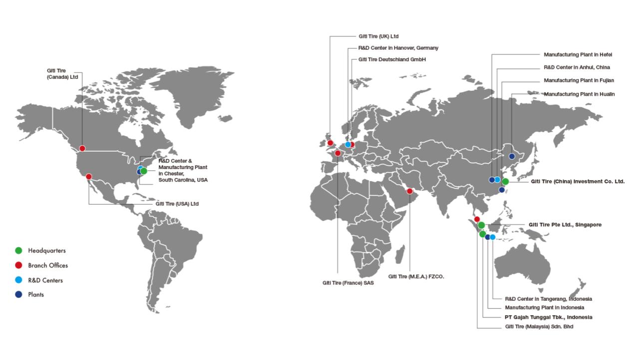 Les pneus Giti sont offerts aux États-Unis depuis plus de 20 ans, et Giti possède de nombreuses installations en Amérique du Nord, soutenant plus de 6 500 points de vente au détail aux États-Unis et plus de 740 au Canada.